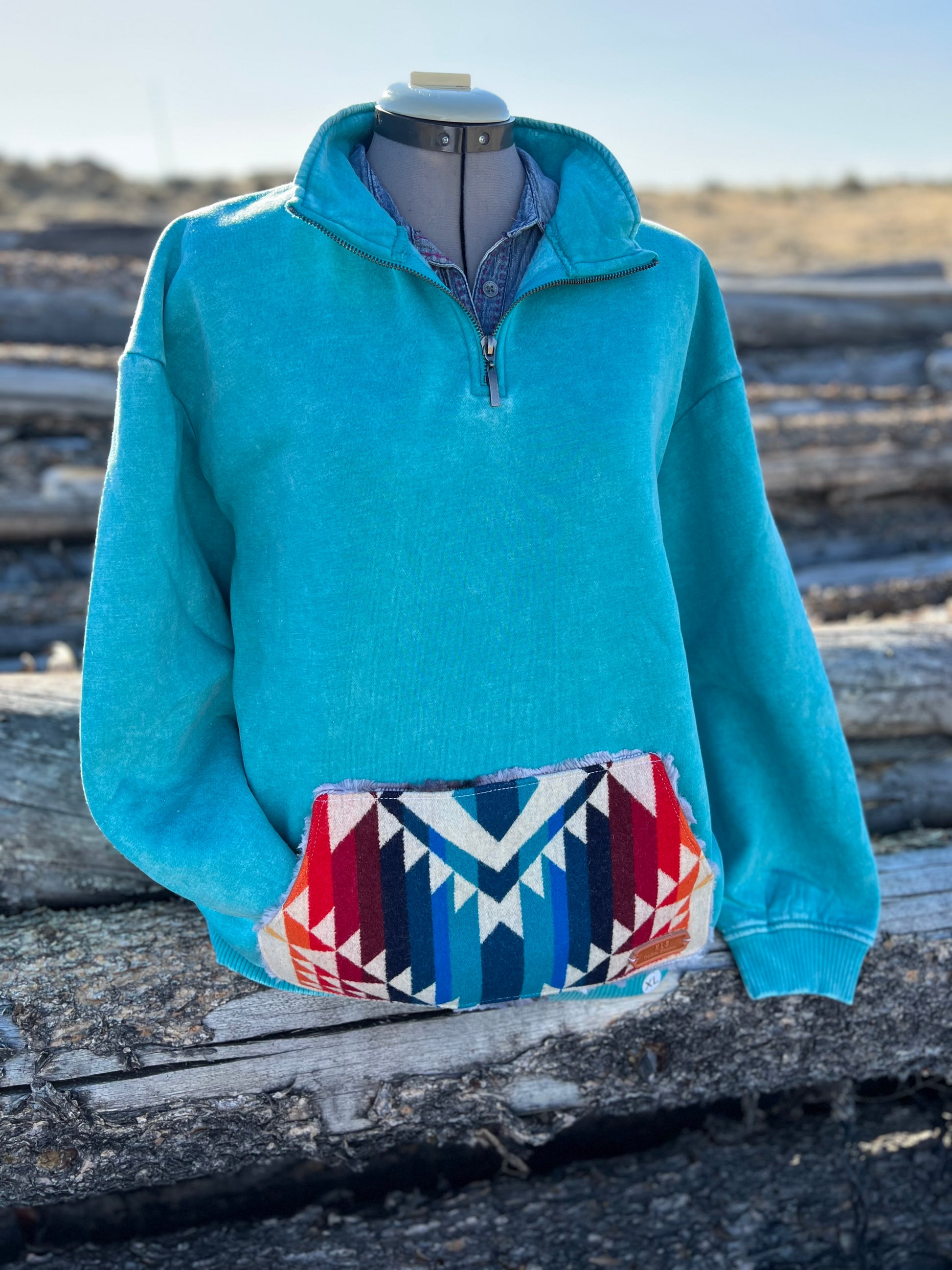 1/4 Zip Super Soft Sweatshirt accented with a front pocket made with Pendleton©️ Wool and lined with luxury plush minky!!