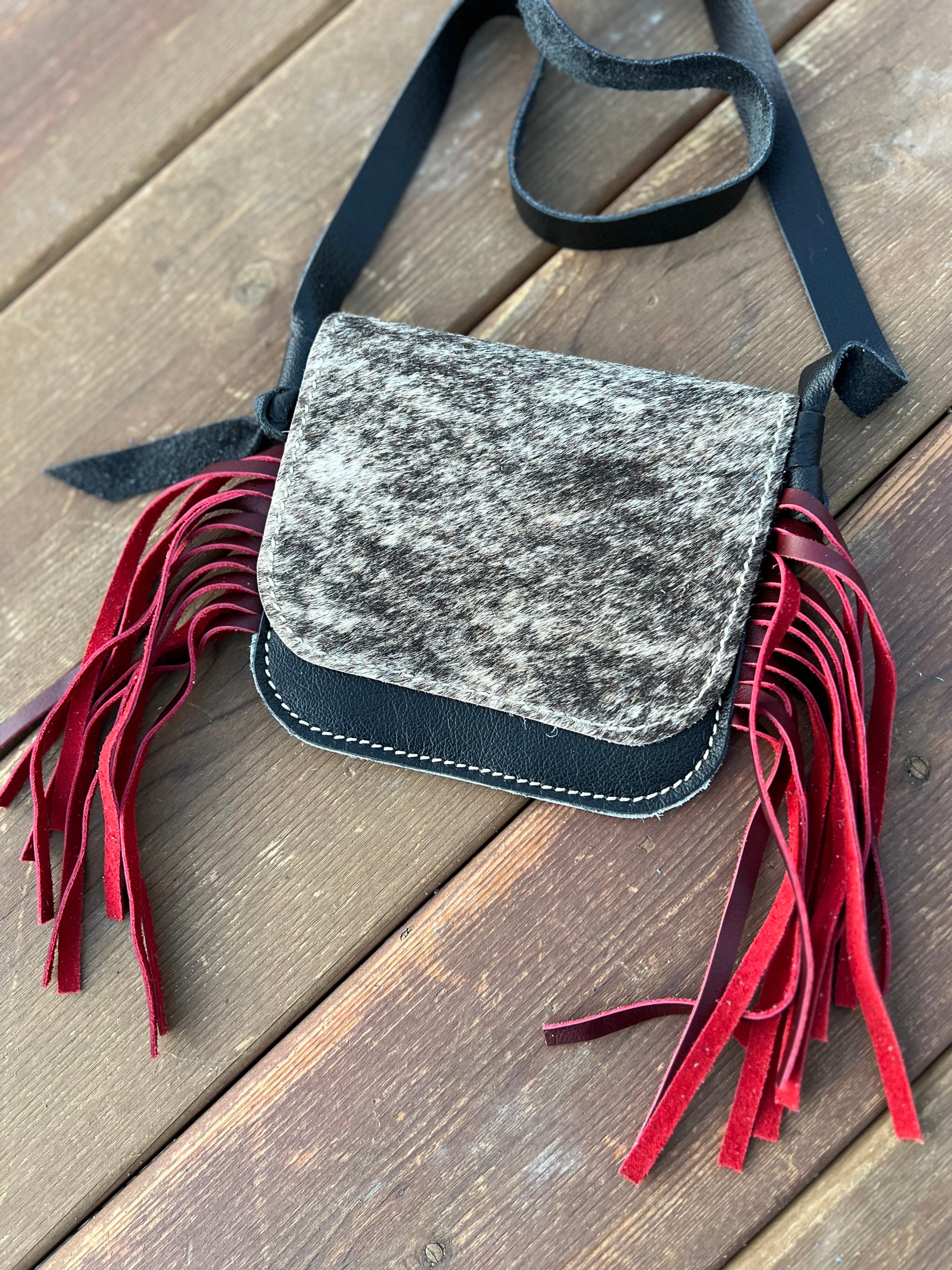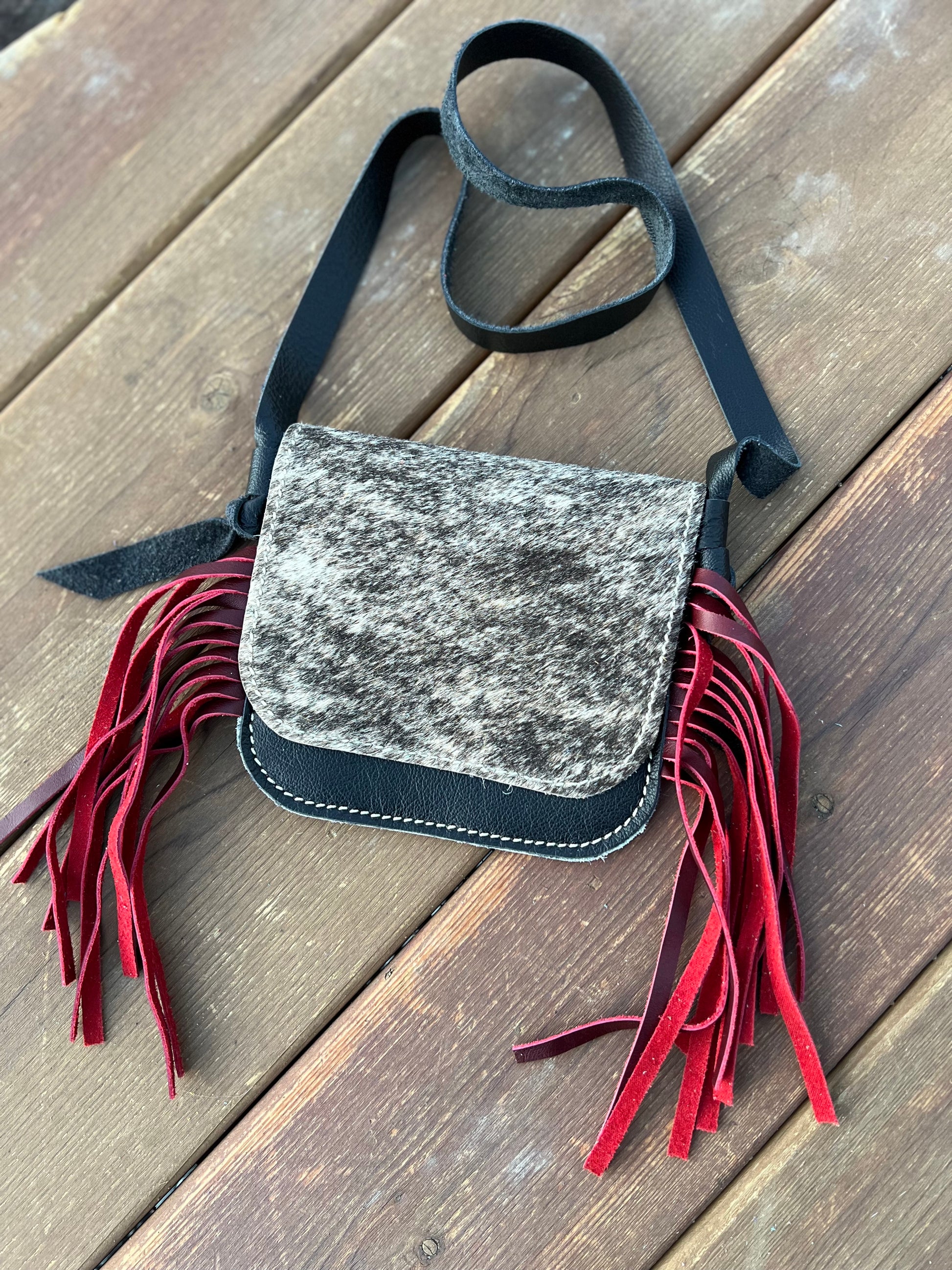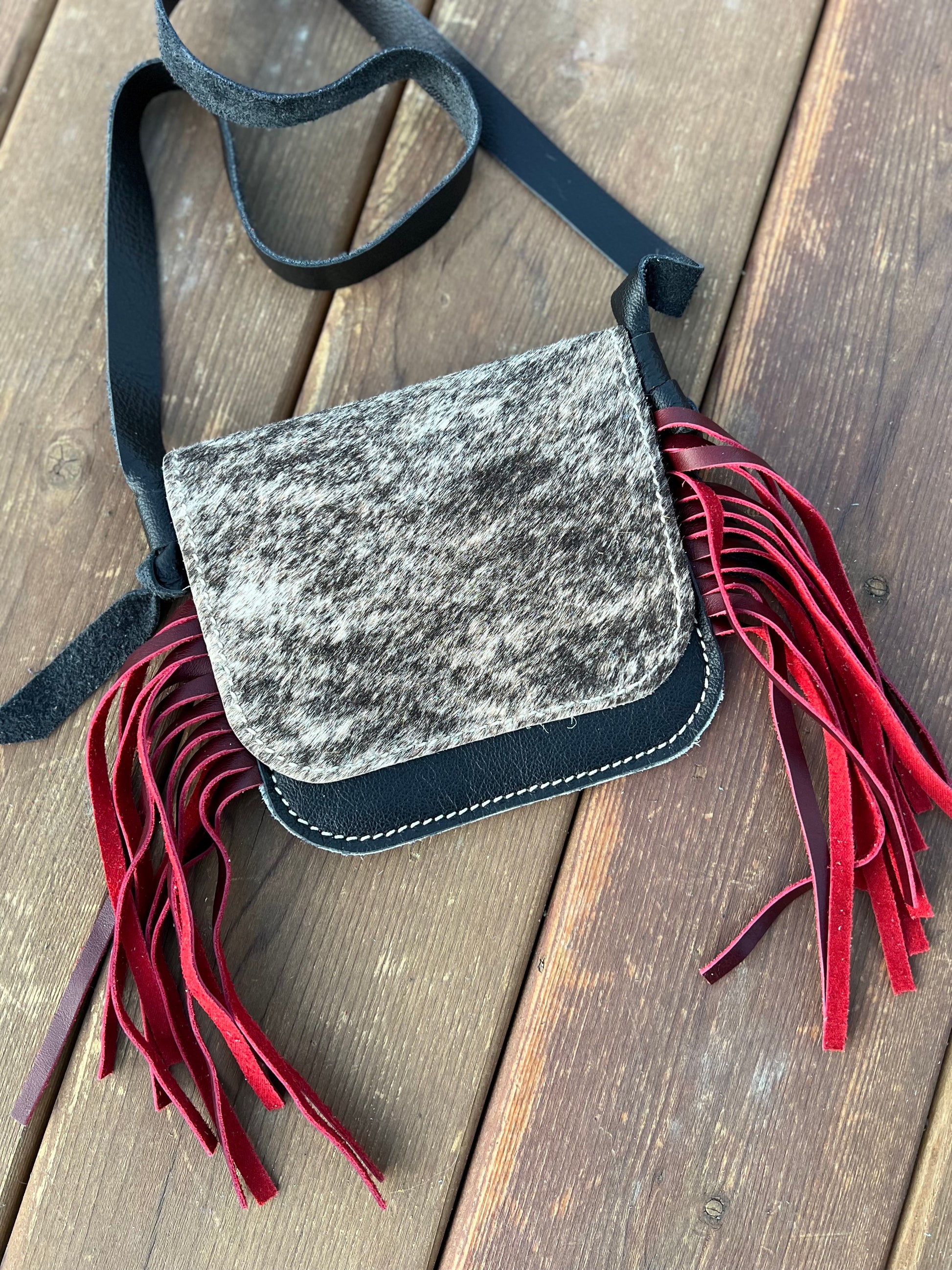 Leather + Fringe with adjustable length straps (can be tied shorter)