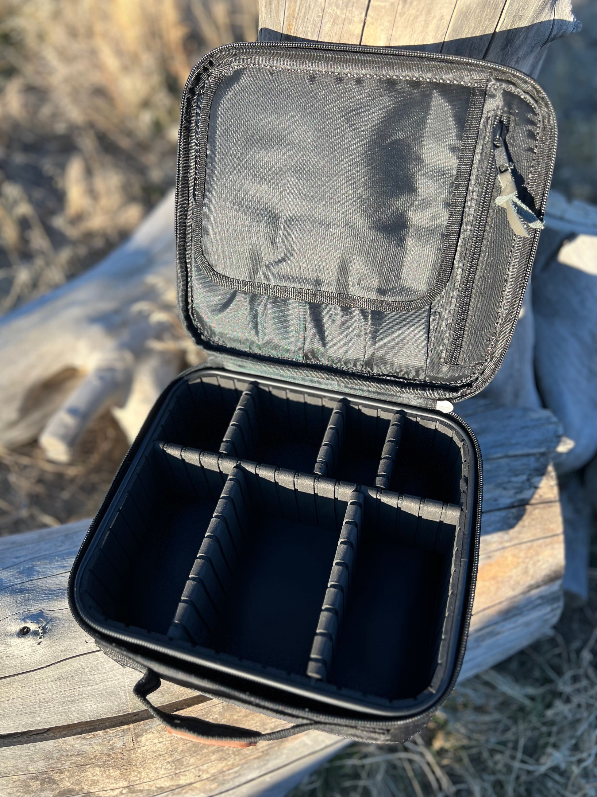 This fantastic travel case has MOVEABLE dividers allowing you to customize to fit your makeup and jewelry! There’s also a zippered compartment and separate slots to put makeup brushes or others essentials.